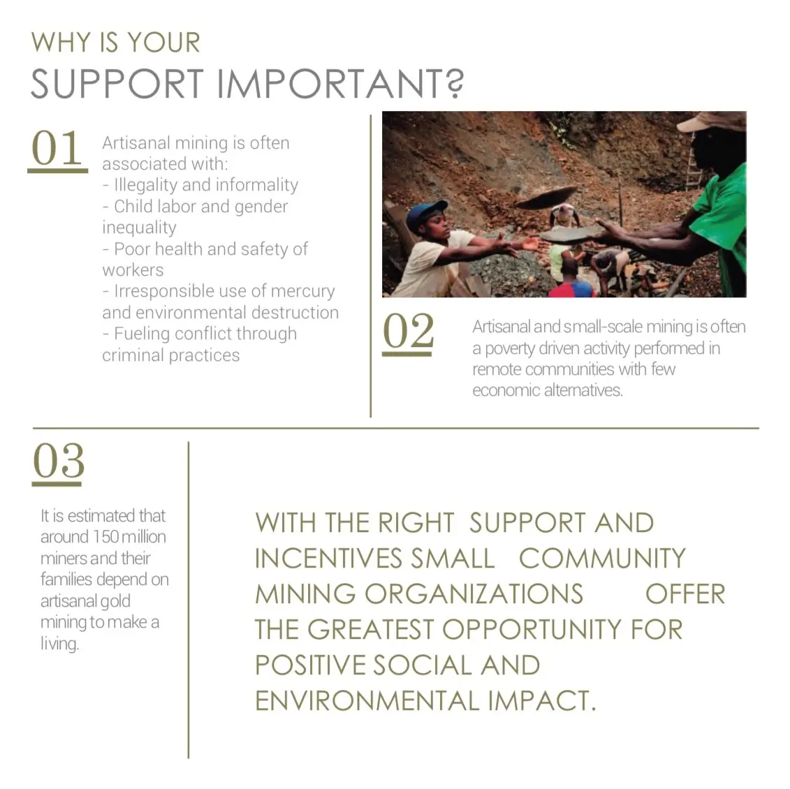 Fairmined gold nurtures certified miners to become technically, economically, environmentally and socially feasable, sustainable businesses in their own right, providing them with a sustainable livelihood.