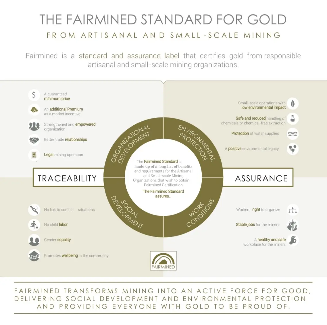 The Fairmined Standard was developed by the Alliance for Responsible Mining (ARM), a non-profit organization globally recognised as a leader and pioneer of responsible artisanal and small scale mining. Fairmined transforms mining into an active force for good, ensuring social developement and environmental protection.
